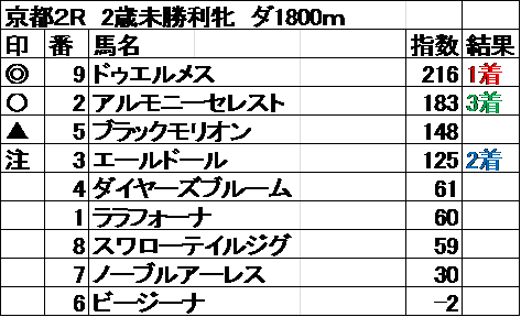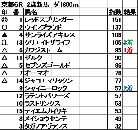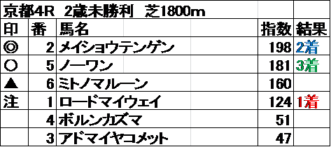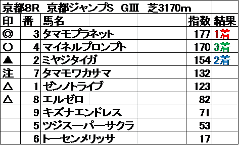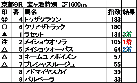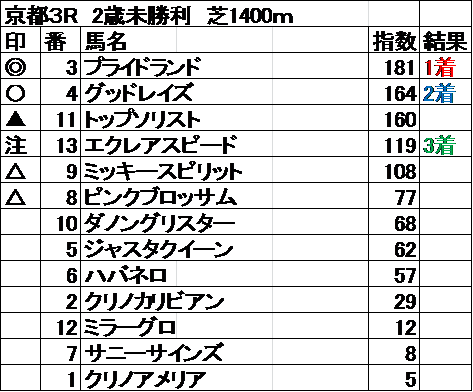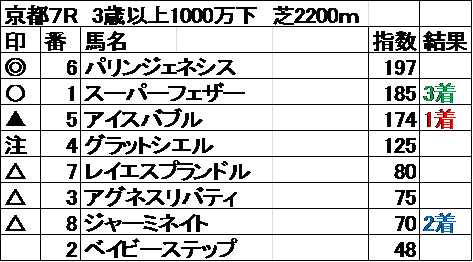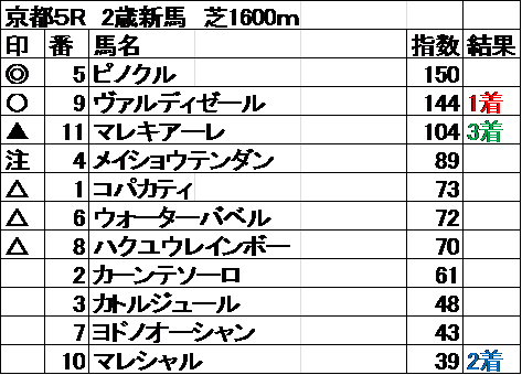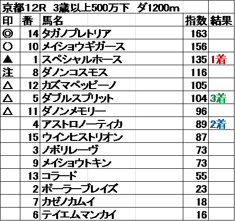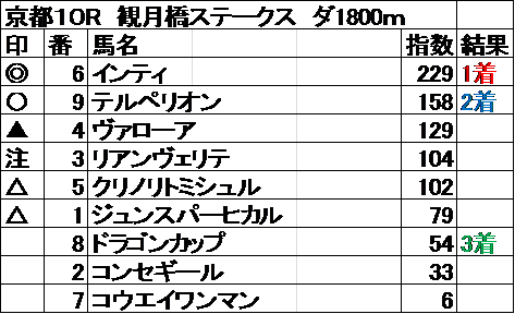 全レース指数予想 結果